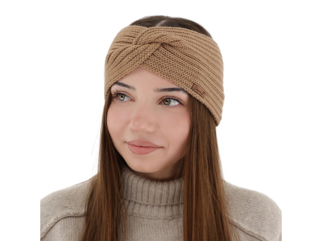 Dámska jarní merino čelenka camel