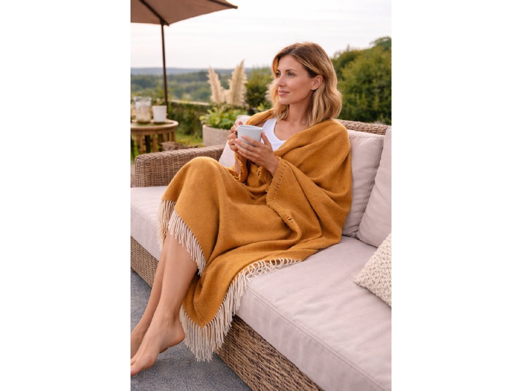 Luxusní deka z merino vlny 140 × 200 cm – camel | 100 % merino vlna