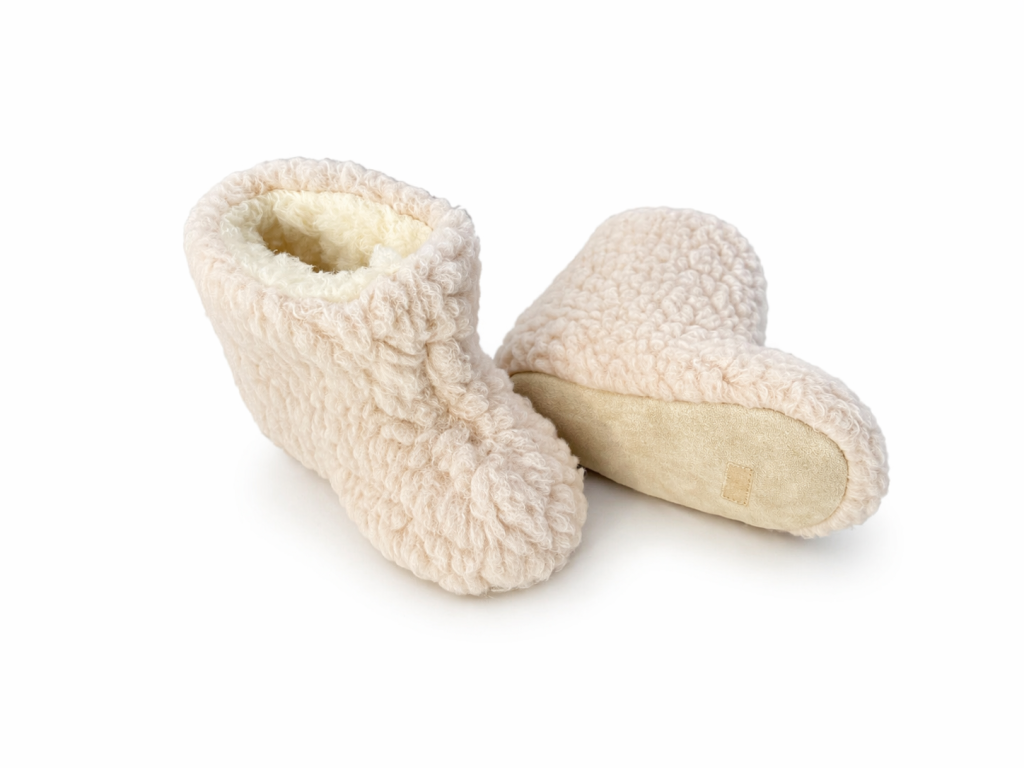 Bačkory mají protiskluzovou podrážku, která zajistí bezpečnou chůzi na různých površích, ať už doma nebo na hřišti. Měkká ovčí vlna jemně obklopí dětskou nohu, čímž zaručí pohodlí i při delším nošení.