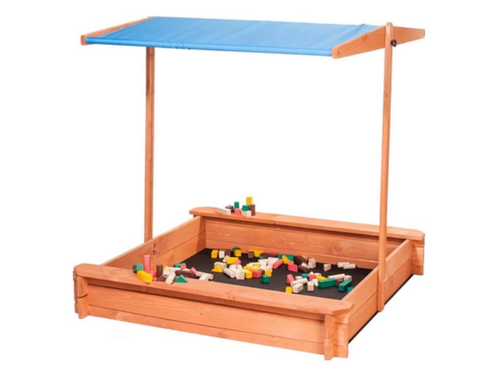🏖️ Dřevěné pískoviště se stříškou – zábava na zahradě každý den!