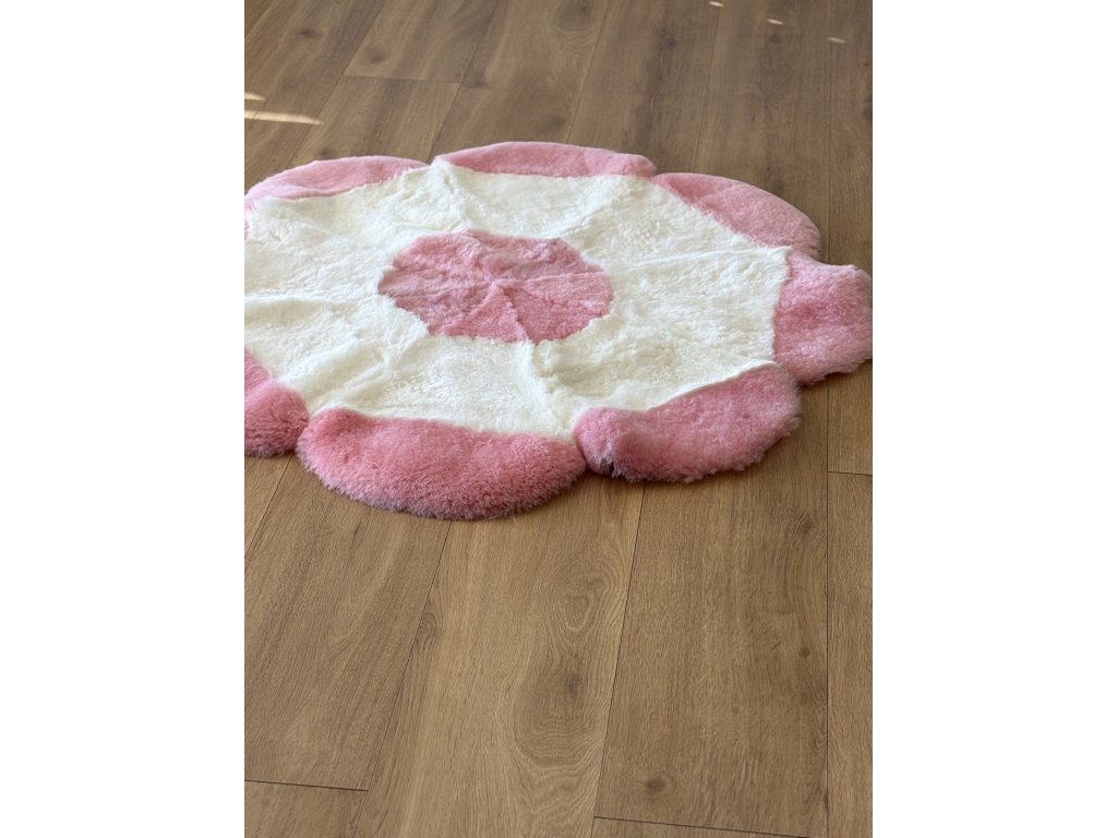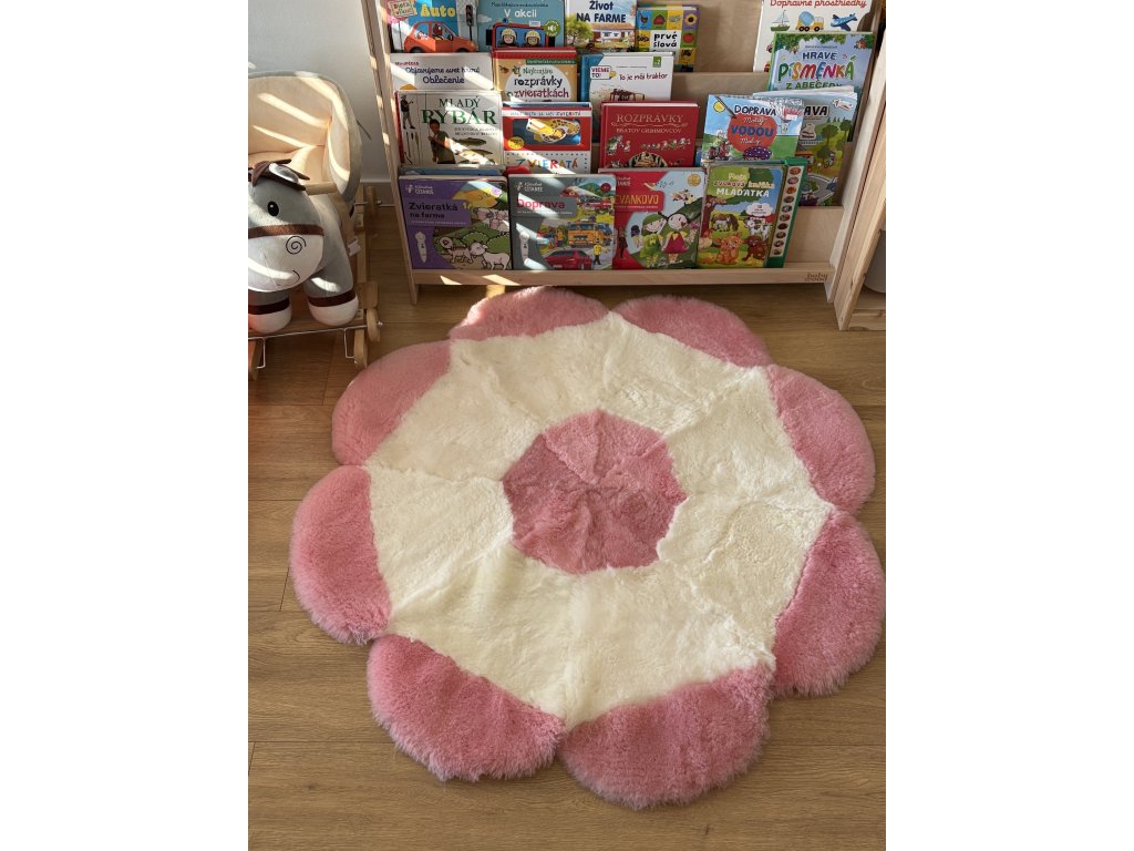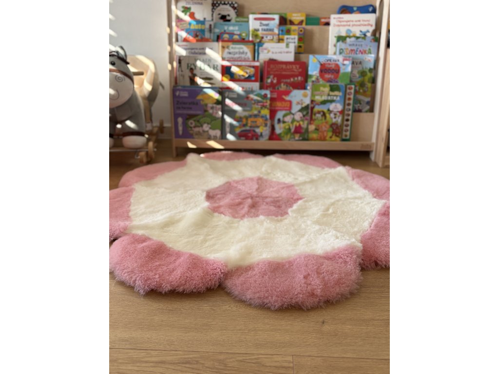 🌸Koberec kvítek růžový z ovčí kožešiny – jemnost a hravost pro vaše dítě 🌸