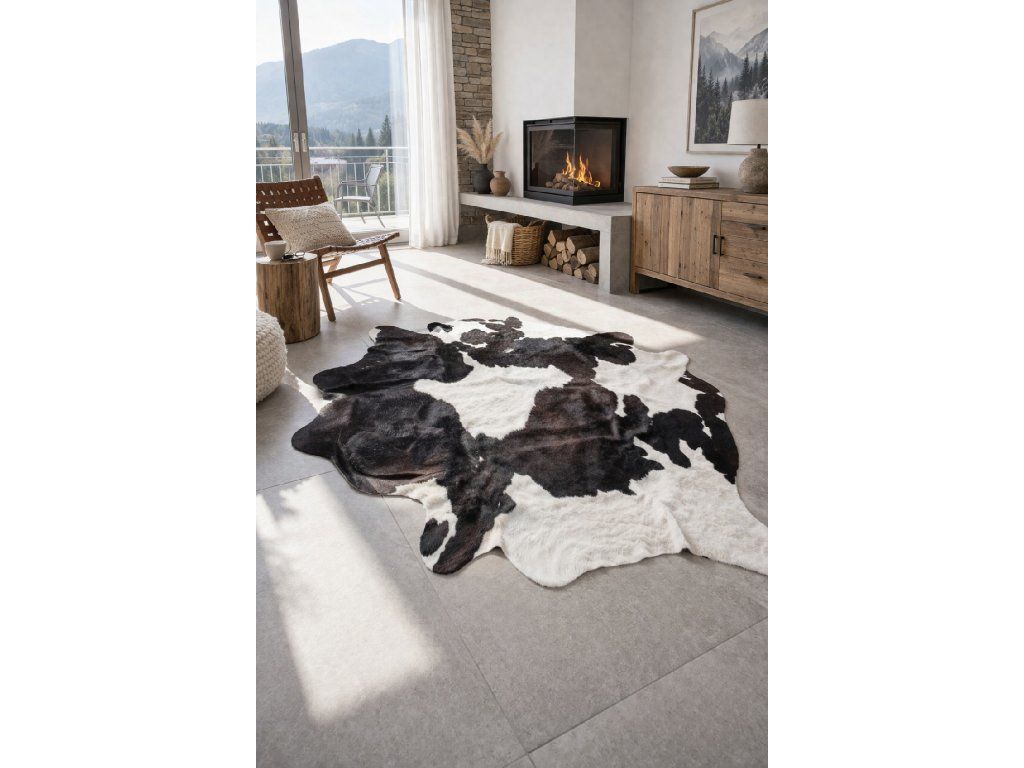 Bílo - černá hovězí kůže je nadčasový interiérový prvek, který spojuje přírodní eleganci, výjimečný design a dlouhou životnost. Tento prémiový kousek z kravské kůže je ideální jako koberec, přehoz, dekorace na zeď nebo podlahu.