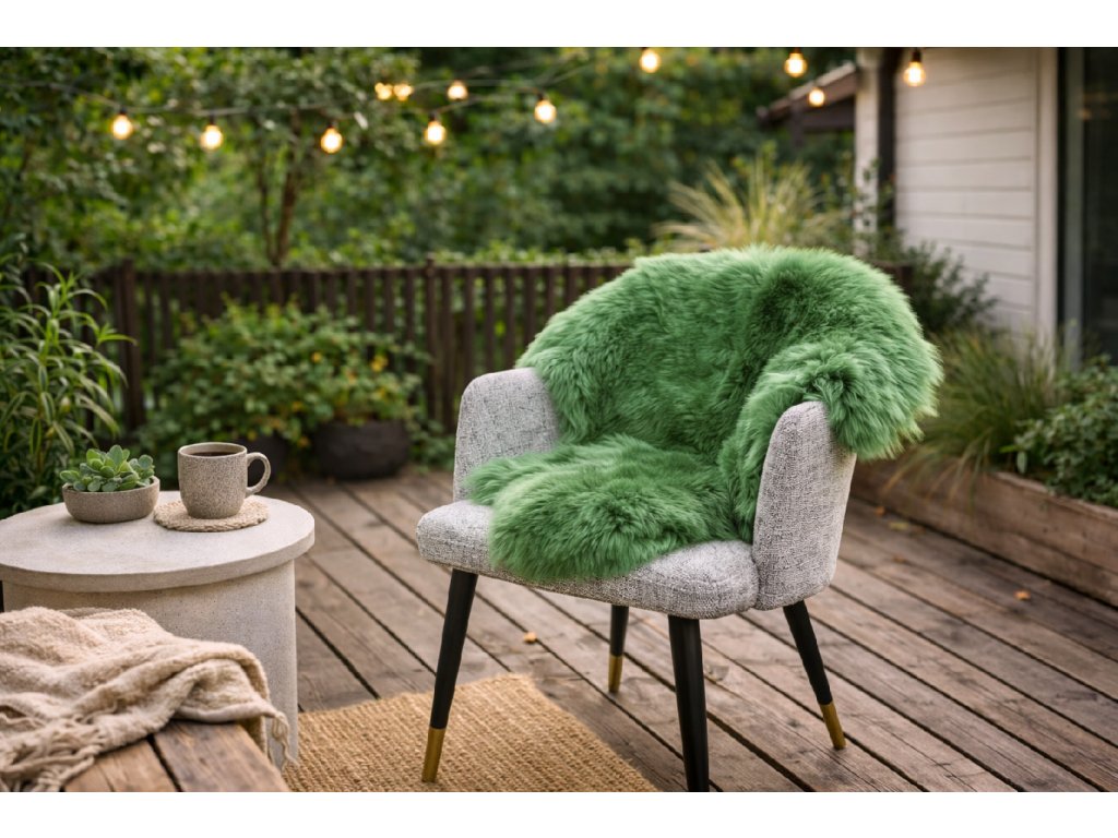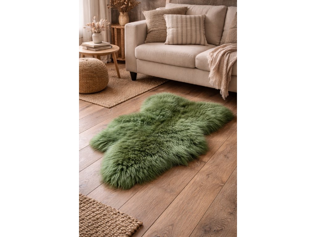 Ovčí kožešina zelená je netradiční a osvěžující doplněk – vnese do interiéru hravost, originalitu a spojení s přírodou.