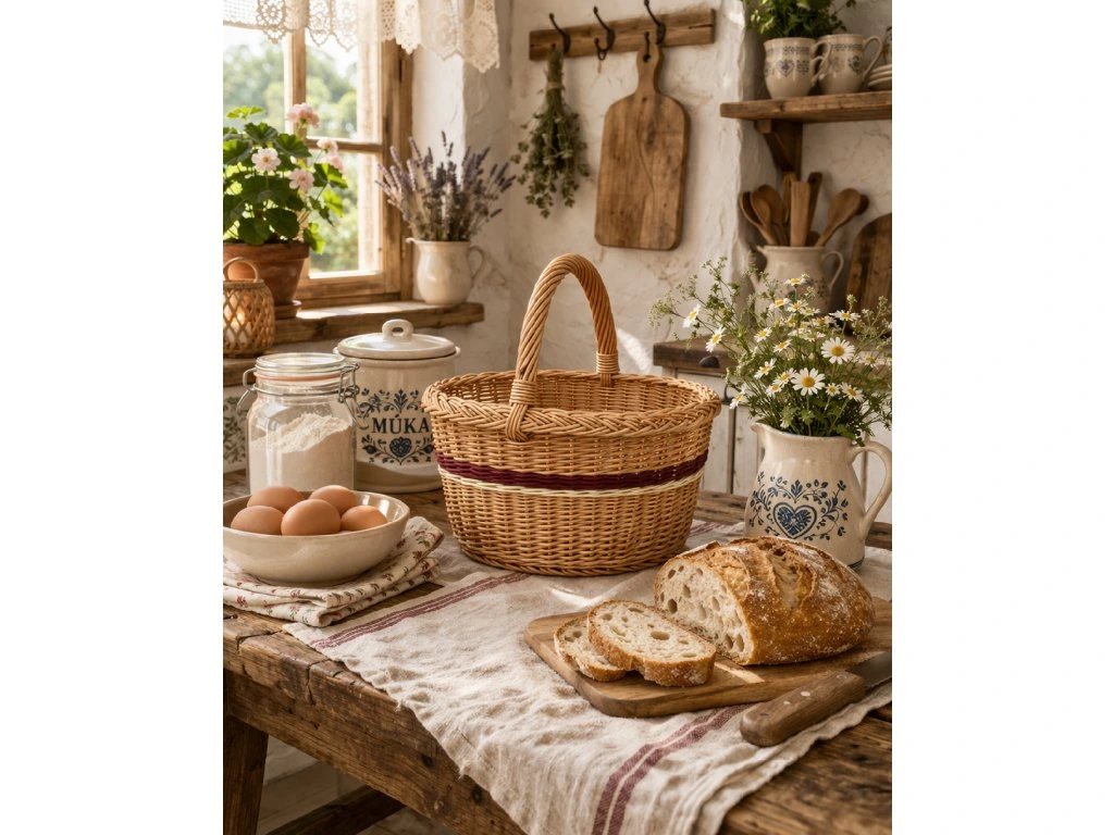 🧺 Proutěný košík s hnědým pasem – krásný detail, který vynikne