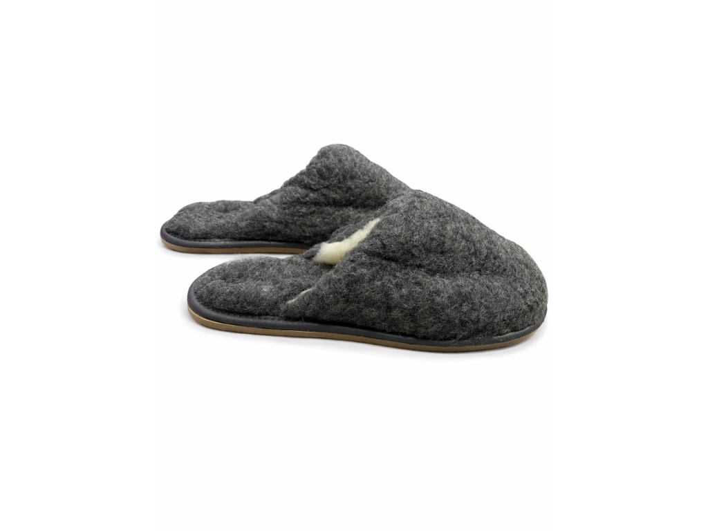 🥿 Šedé vlněné vsuvky – pantofle z ovčí vlny na doma i chalupu